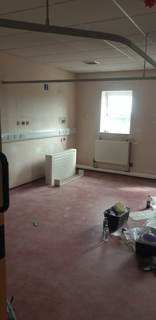 Every wall in every room was prepped filled and decorated in a variety of new colours, which completely transformed the Ward.